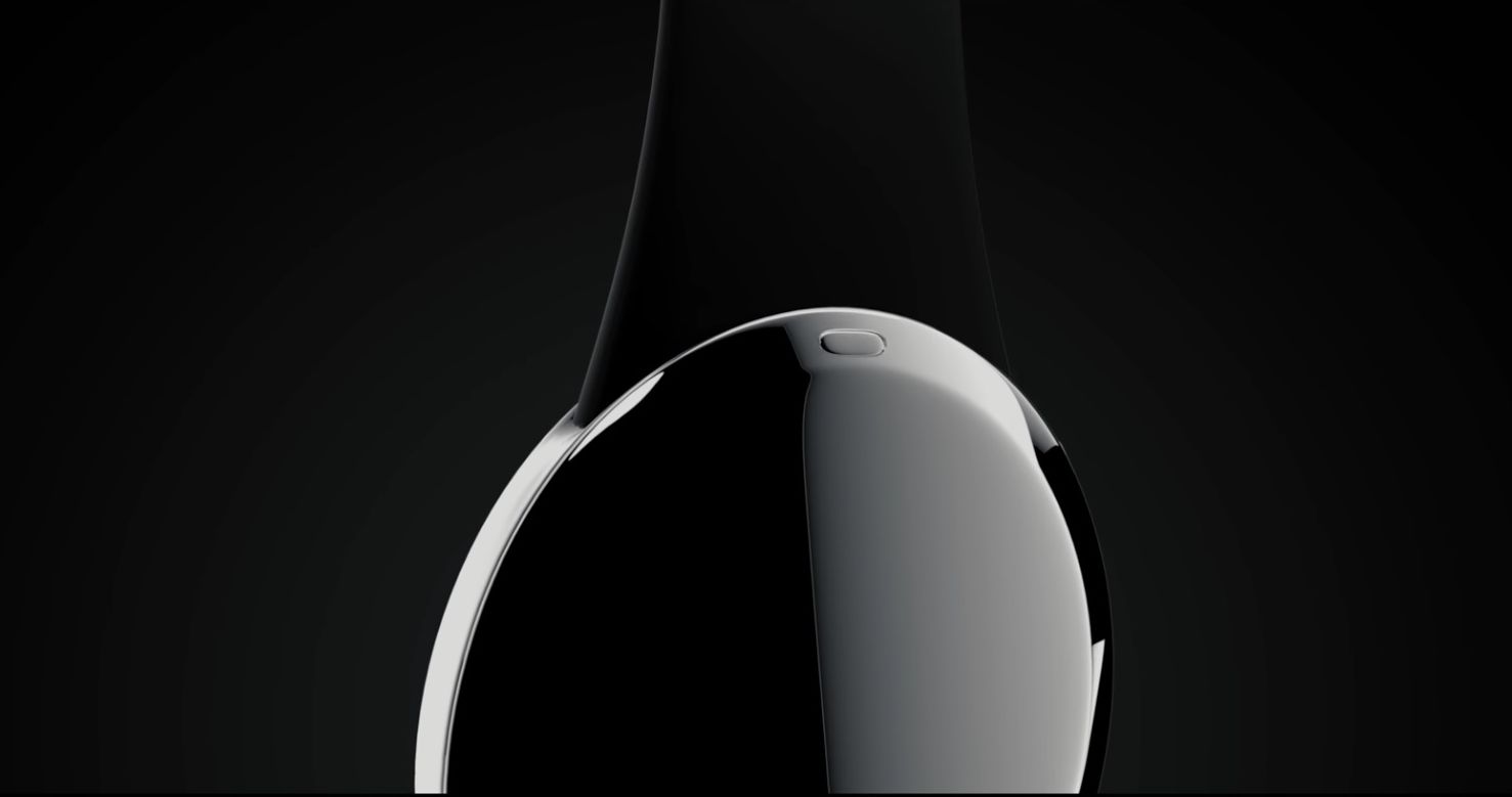 The device becomes slimmer, has a metal body and feels like a shiny pill. It’s as if you took the Apple Campus, boiled it down to a pill shaped device and attached two belts to it. It has a fingerprint scanner embedded into the display, keeps the famous “floating cloud UI” and has barcode scanning via the screen somehow, so it comes with a front camera.