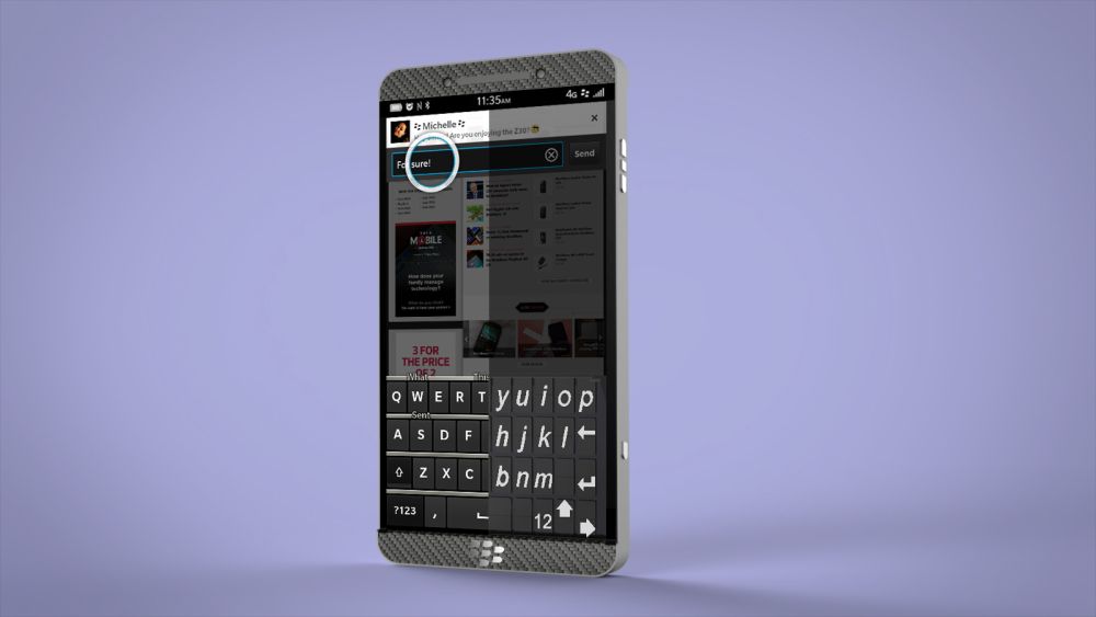 His idea is to use a hidden QWERTY along with a virtual keyboard that’s present usually on touchscreen handsets. The device also comes with a secondary hidden “lens”, that provides access to special photo features. This BlackBerry concept also involves a metal and carbon fiber case and a special area that covers the lenses involved with the powerful camera. At the lower back of the device we’ve got a layer of Italian black leather.