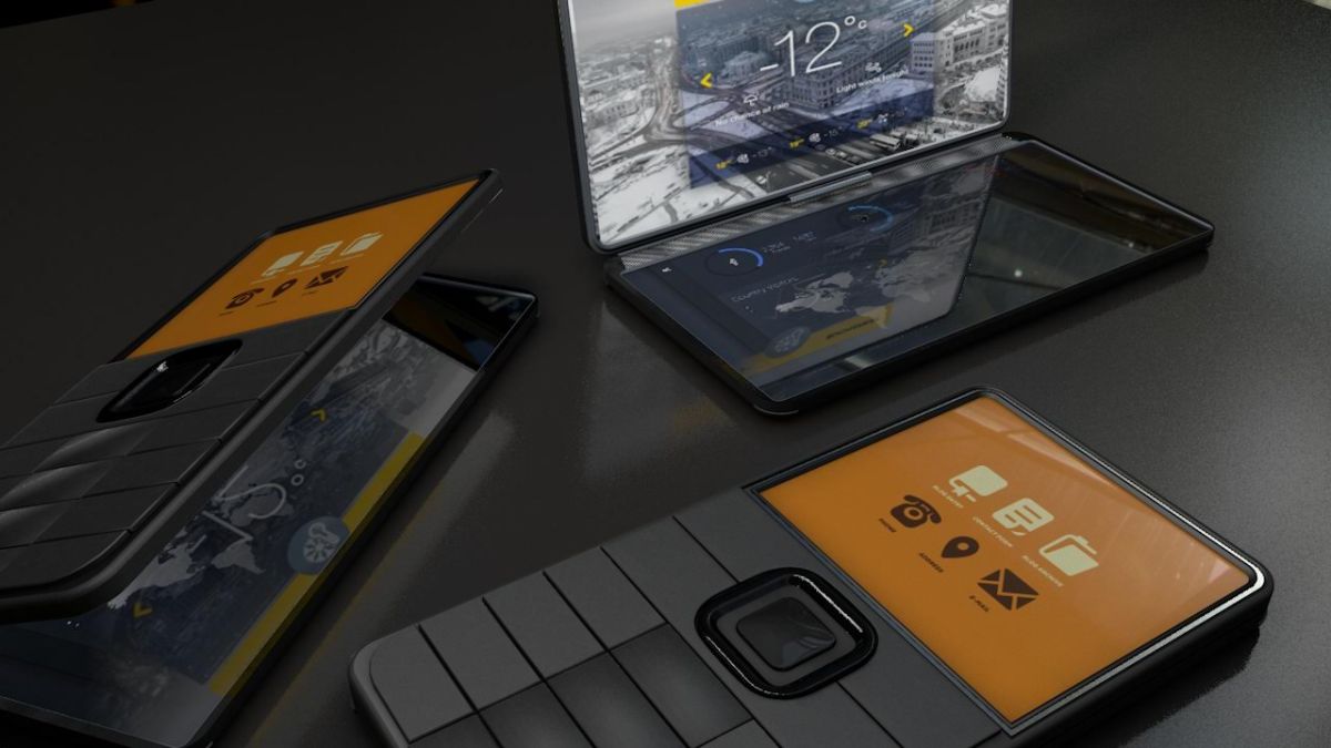 The designer was unhappy with CAT’s usual design approach, considering that their devices lack beauty and styling. This time around we get a dual touchscreen approach and two crazy 4K displays for some reason. There’s also a numeric keypad to keep things even more bizarre and functions like compass, maps and the ability to control the device using hiking gloves.