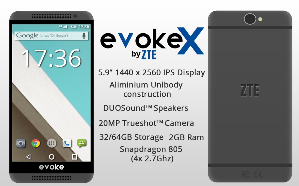 ZTE Evoke X packs a 5.9 inch display with a 2560 x 1440 pixel resolution and an IPS panel. It comes with a 20 megapixel TrueShot camera, 32 or 64 GB of storage, 2 GB of RAM and a Snapdragon 805 quad core 2.7 GHz chipset. The speakers are both integrated at the front and the device’s Android buttons are virtual ones, not capacitive ones. Even the two stripes at the back of the HTC One are replicated.