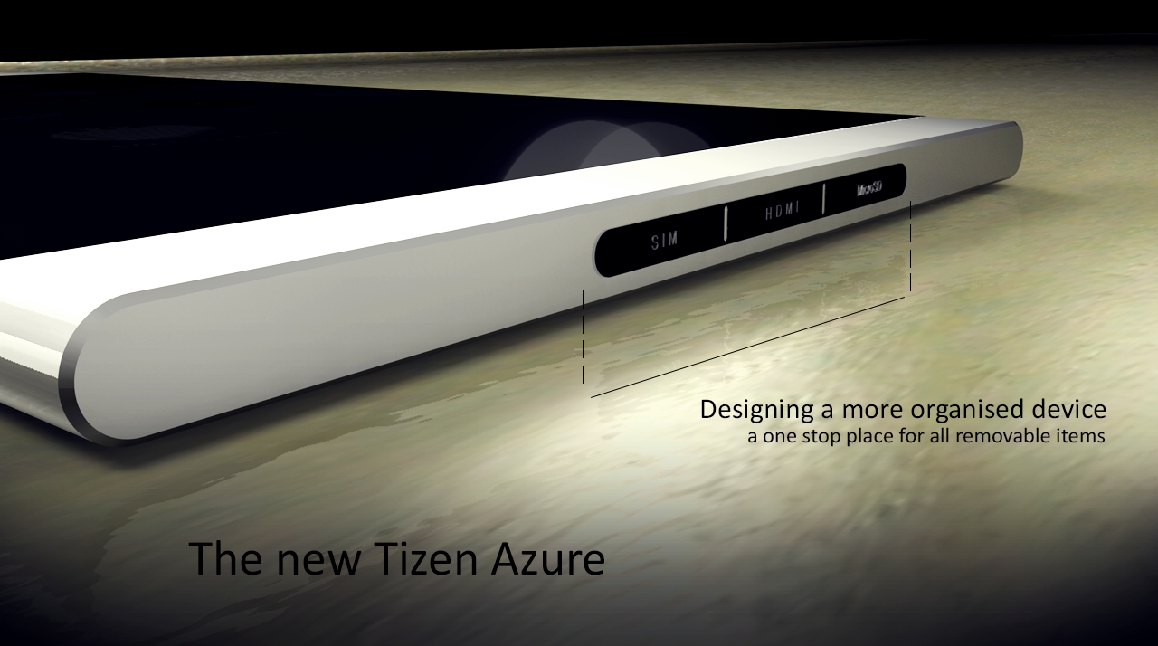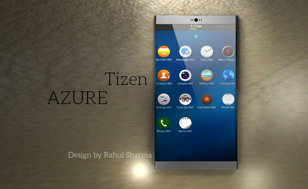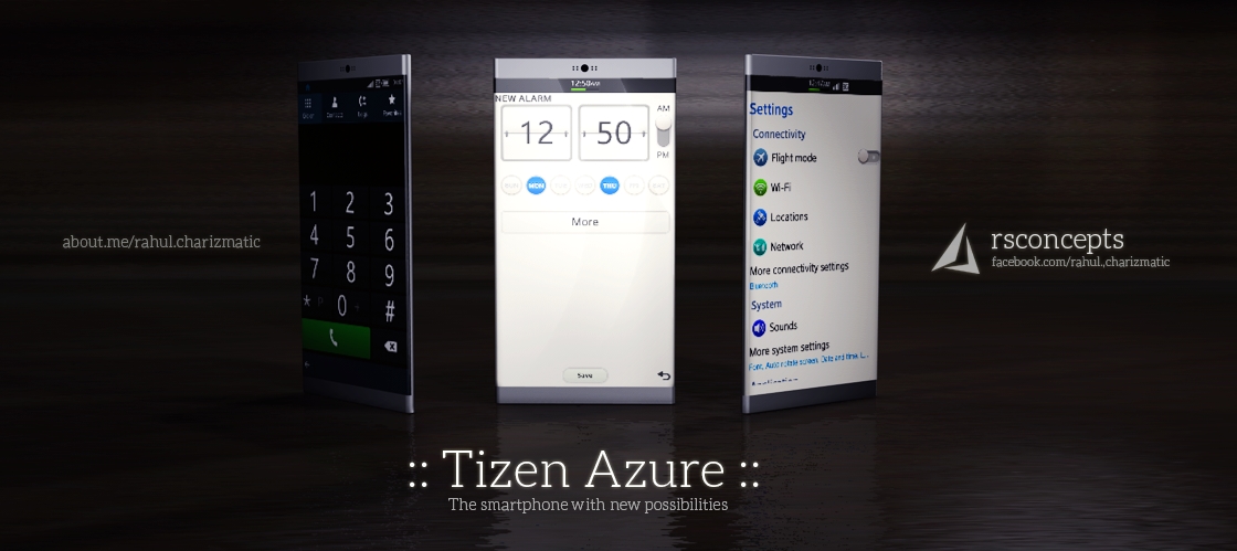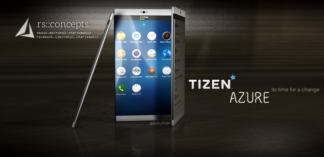 Note: There is a rating embedded within this post, please visit this post to rate it.Remember the Tizen OS phone from here? Well, the teaser has turned into a finalized phone and Rahul Sharma delivers yet again a great design. The device is called Tizen Azure and comes with the tagline “it’s time for a change”. Samsung and Intel are the makers of the device, that relies on a titanium metal unibody construction.