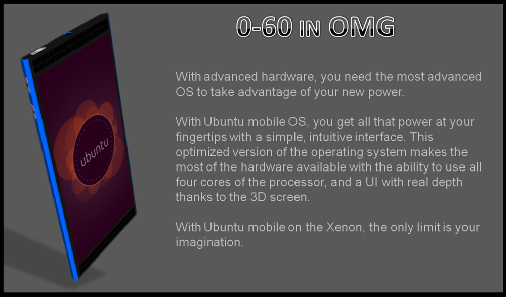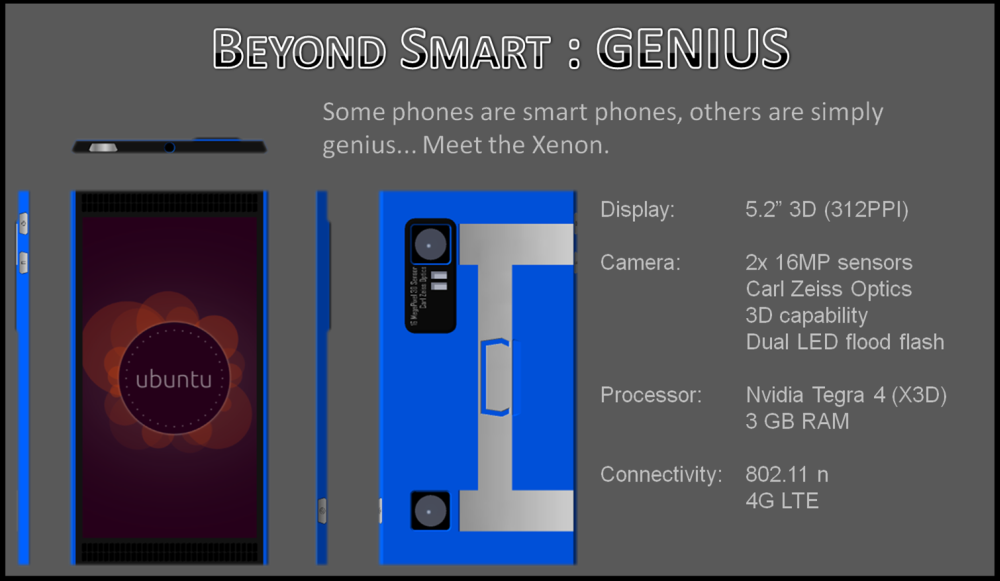 Note: There is a rating embedded within this post, please visit this post to rate it.The teaser you saw here is finally cleared and turns into the following concept Ubuntu phone created by Liam Quinn. The handset is called Xenon and it comes with a 3D display, 3D cameras and obviously Ubuntu Touch as the operating system.