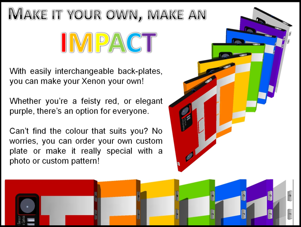 The Xenon concept phone has interchangeable back plates of various colors and if you want to talk specs, know that it features a 5.2 inch 3D display, dual 16 megapixel 3D cameras with Carl Zeiss optics and 3D capability. There’s also dual LED flood flash and inside we can find the Tegra 4 processor and 3 GB of RAM. This model also supports 4G LTE.