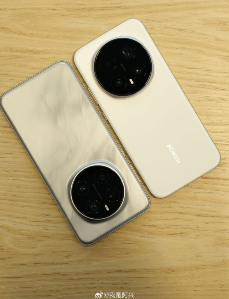 The circular island now integrates three camera lenses arranged in a triangular composition, with the LED flash repositioned to the bottom — a minor ergonomic adjustment, but one that visually stabilizes the layout. The ring itself appears to sit flush within a delicately chamfered metal frame, giving the illusion that the glass is suspended rather than mounted. In the silver variant, reflections curve smoothly across the back, showing how light interacts dynamically with the material — a cue that Honor’s finishing process is approaching the sophistication once reserved for Huawei’s Mate and Apple’s Pro lines.