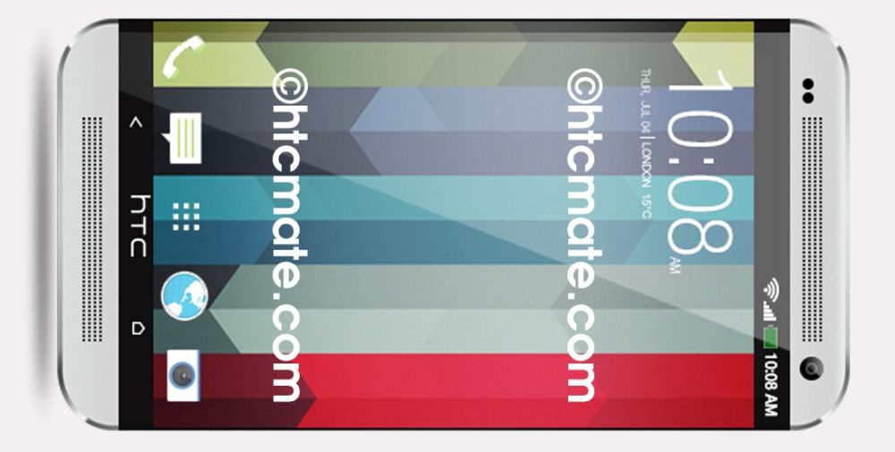 The body seems to be metallic and there’s a certain shiny metallic edge around it. The display here is probably a Full HD or 2K one, as rumored and inside it we may find the Snapdragon 800 or Snapdragon 805 CPU. HTC may want a newer CPU, since they lost the chance to implement a novelty on the HTC One Max and put the older Snapdragon 600 inside, so they have to make it up for that.