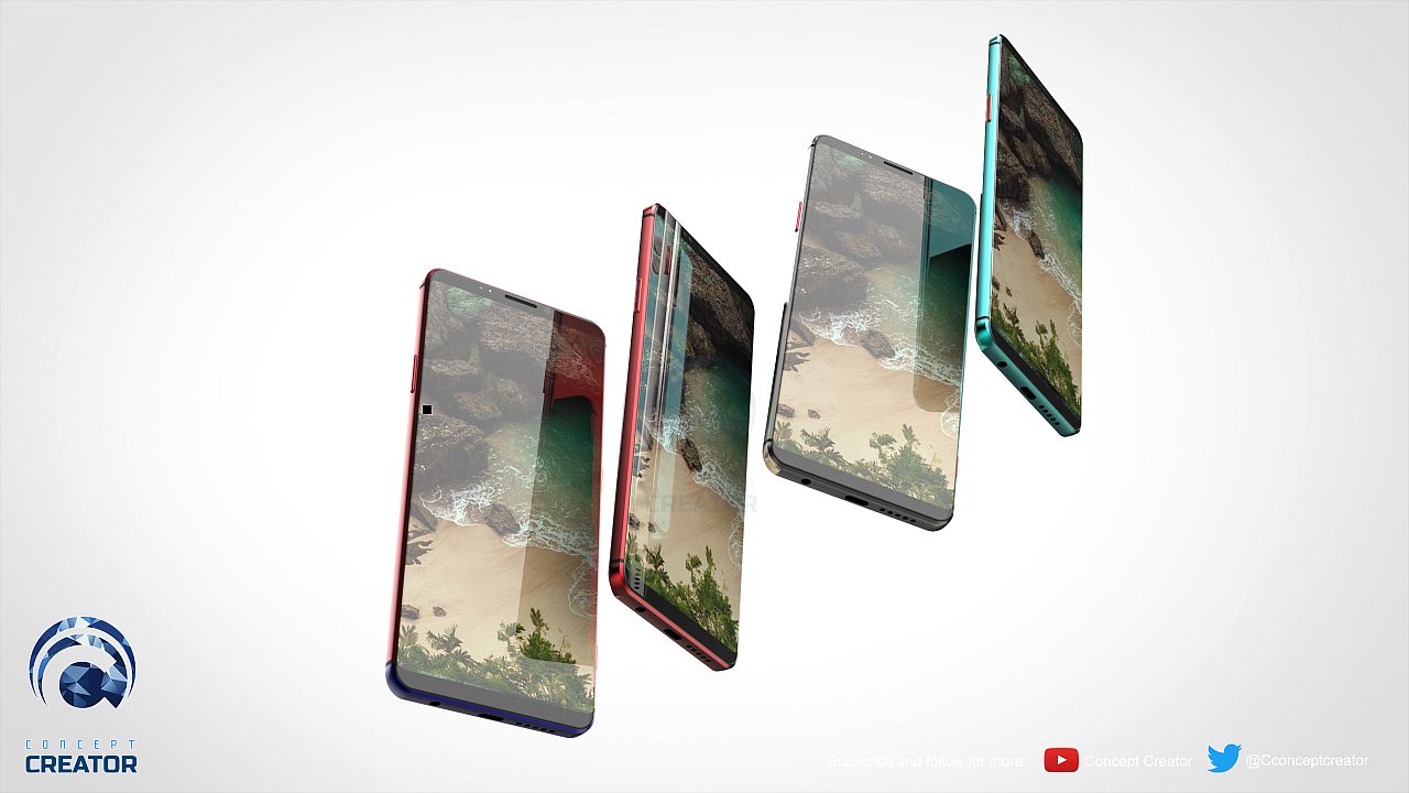 It’s the creation of reputed designer Concept Creator, who tried to change the camera format on the device. This time the cameras are displayed horizontally, with 3 main sensors and an extra one below them. The cyan green version sure looks hot, while the beige one is rather meh. The vivid red and blue are also OK. The only objection I have here is the fact that the device’s cameras placed at the back feel like a spider’s eyes.