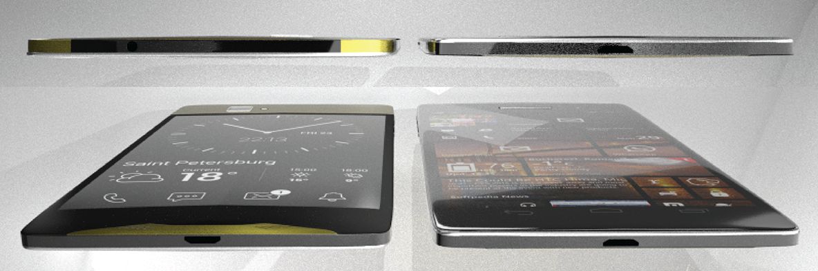 The back seems to feature an E Ink screen, which would use very little power and the indication of Saint Petersburg in the weather widget area is a good hint regarding the YotaPhone identity of the project. And in other news, strange to see there’s a regular microUSB port here, not an USB Type C. If the YotaPhone 4 looks like this and it’s priced decently, it may have a shot…