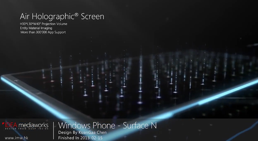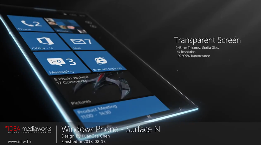 Note: There is a rating embedded within this post, please visit this post to rate it.Created by KuanGaa Cheen, the Windows Phone surface N handset has a set of crazy specs, that include a transparent display with 4K resolution. As if that wasn’t enough, there’s also a holographic projector on board, as shown in the video below.