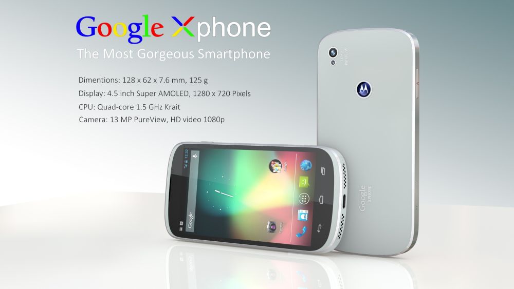 We’re dealing with the upcoming superphone from Google and Motorola, a sort of Nexus device without the Nexus branding, from what we’ve heard. The handset comes with a 7.6 mm thick chassis, still thicker than the Motorola Droid RAZR and it weighs 125 grams. It features a 4.5 inch Super AMOLED display with a 1280 x 720 pixel resolution and a quad core 1.5 GHz Krait CPU, plus a 13 megapixel PureView camera with Full HD video.