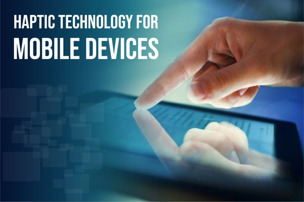 Haptic technology for mobile devices generates the feel of touch on screen through vibrations, force, and motion that is felt by the user. It is used to convey information/message to the user. It involves the physical contact between the user and the mobile devices. Haptic devices allow users to touch, feel and manipulate three-dimensional objects in virtual environments and tele-operated systems. Haptic technology facilitates investigation of how the human sense of touch works by allowing the creation of controlled haptic virtual objects. Products featuring haptic feedback treat the tactile sensations not as the primary goal of the product, but rather a single component that adds to the overall enjoyment of the product. Haptics allow non-responsive surfaces like touchscreens to emulate the feeling of using real objects like buttons and dials.
