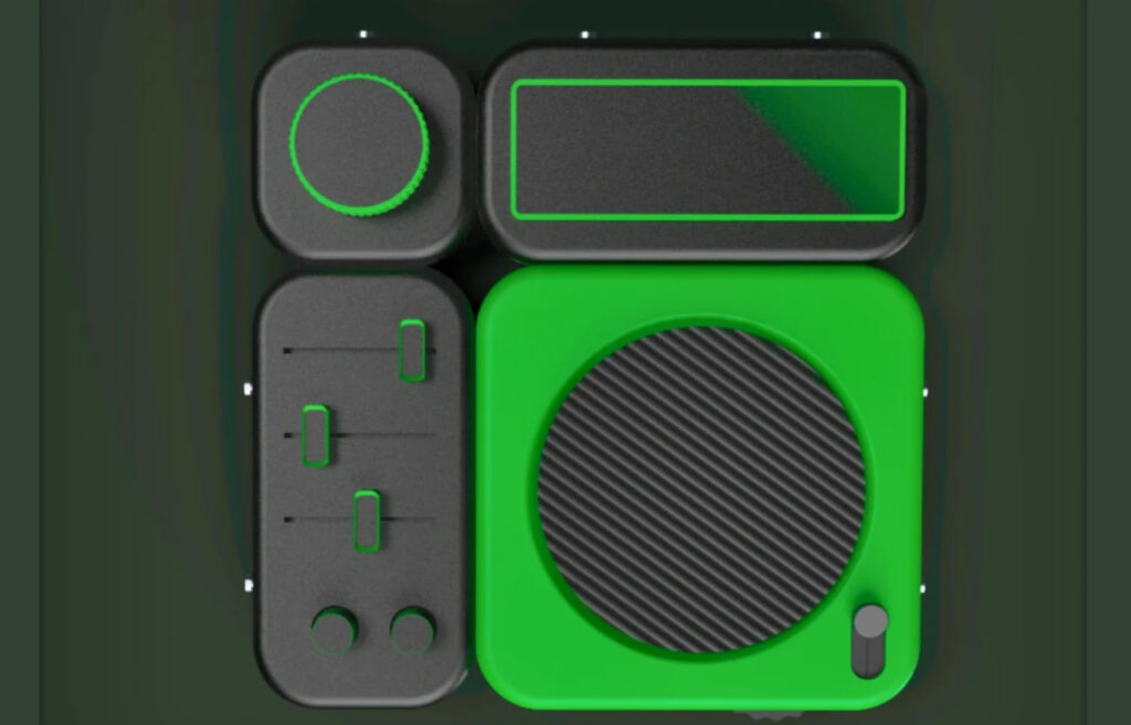 The speaker module, with its large, ridged diaphragm and vivid green casing, is the hero of the layout. It’s tactile, deliberate, and reminiscent of old boomboxes or analog radio dials. You can almost hear the bass just by looking at it. But what elevates the design is the ecosystem of supporting modules—each designed for interaction: