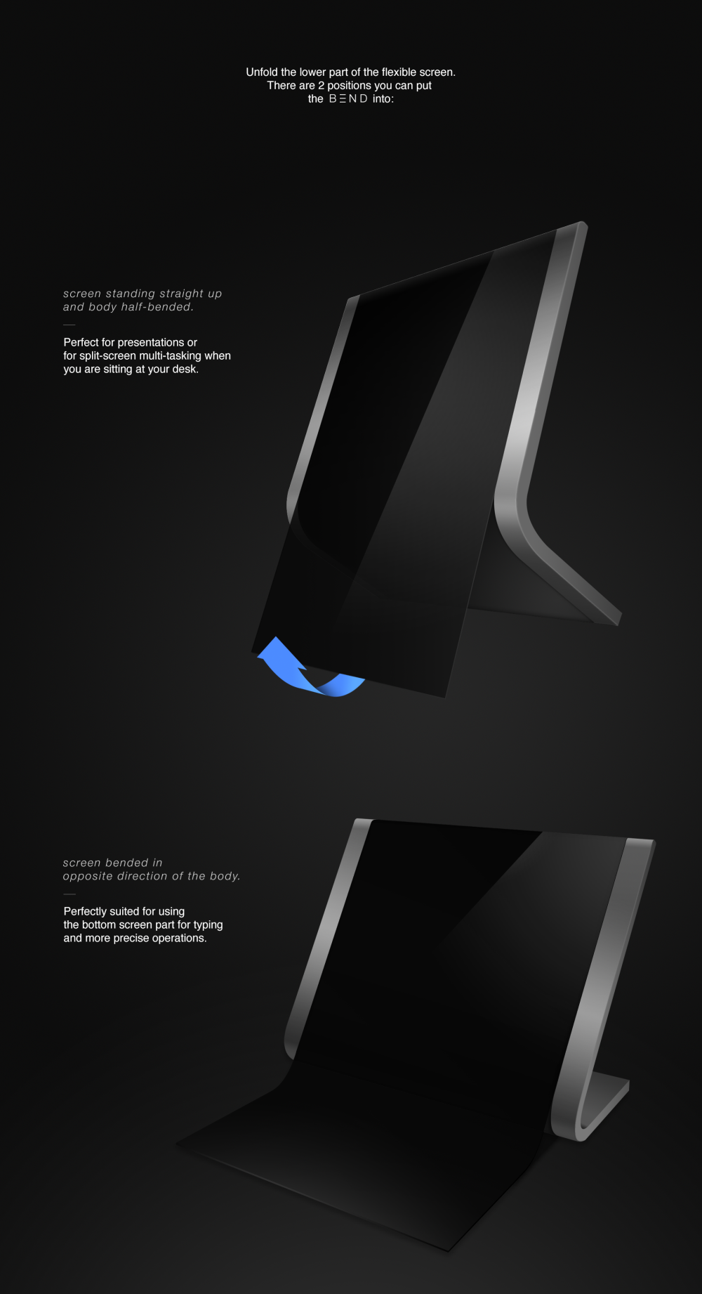 Imagine a tablet that can be bent and use a part of it as a kickstand or even a transparent keyboard… Robrecht Vanhauwere has rendered this device and it’s called Samsung Bend, plus it’s detailed below, complete with the devices that inspired it.