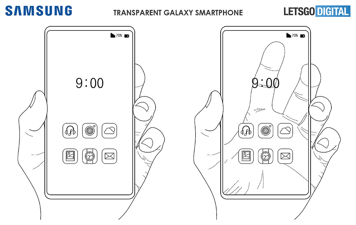 Letsgodigital has come across a patent of the sort and has turned it into a set of renders for us all to see. It’s a joint initiative between the Dutch website and designer Giuseppe Spinelli, aka Snoreyn. Back in January 2020 Samsung filed a utility patent with the USPTO (United States Patent and Trademark Office) and WIPO (World Intellectual Property Office). The patent was published on August 27th 2020 and describes the technology required to create a transparent smartphone.