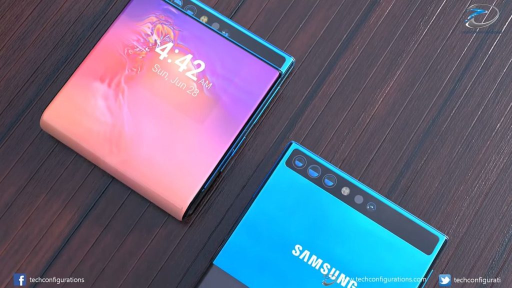 Note: There is a rating embedded within this post, please visit this post to rate it.Over the past week we’ve seen more and more foldable phone patents going around, some of them with that clamshell approach that people may sometimes scoff towards. Samsung apparently has one in the making and the folks of Techconfigurations have taken over the rumors and have turned them into legit renders, shown below.