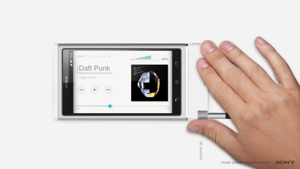 A nifty idea is the volume control by rotating the wheel at the lower area of the device. The result here is a beautiful and original Sony Android concept, that actually looks hot and will last for many years thanks to the modular approach.